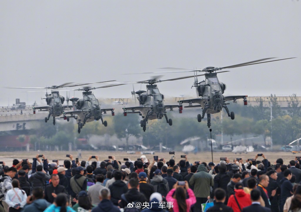 现场,陆军“风雷”飞行表演队以七机通场飞行拉开本届直博会首场飞行表演的帷幕。
