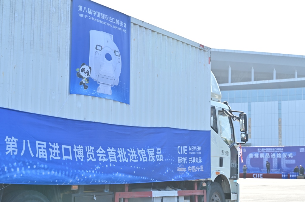 10月23日,第八届进博会迎来开幕倒计时12天之际,本届进博会首批展品进馆仪式在国家会展中心(上海)举行。