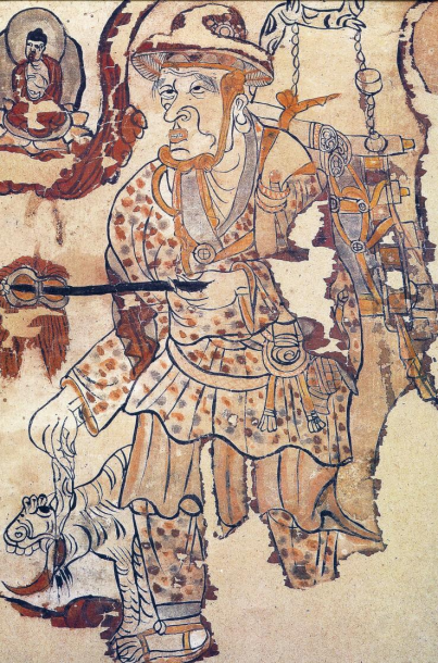 在隋唐之前的僧史文献中,只有一位僧人是作为行脚僧而驾驭老虎一同赶路的,那就是耆域。耆域是晋代僧人,晋惠帝末年自天竺经扶南(今柬埔寨境内)来华,据说在从襄阳过江后到洛阳的途中,耆域迎面碰到了两只老虎,本来八面威风的兽中之王见到耆域竟两耳收敛、尾巴下垂,一副乖乖虎的模样,伴随他一起前行。耆域后来摸摸虎头,两只老虎就乖乖地下道而去。