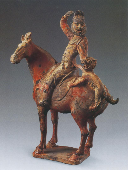 图2 唐彩绘胡人骑马携豹俑(高30.5厘米),1960年陕西乾县唐永泰公主墓出土
