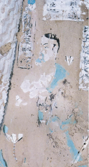 第6龛北侧菩萨的顶部又彩绘一尊菩萨,旁墨书题名“弥勒菩萨”,弥勒菩萨的东侧彩绘立佛,旁墨书题名“释迦牟尼佛”。释迦牟尼佛东侧,在宽0.87米、高0.47米的白底长方形框内墨书造像铭文,其后有“建弘元年岁在玄枵三月廿四日造”的字样。建弘元年即420年,正值西秦乞伏炽磐统治时期,也是西秦国力较盛的时期。这则铭文是目前国内各石窟中最早的有纪年的造像铭文。在龛内彩绘弥勒菩萨和释迦牟尼佛的下面,墨书题名者有“清信女妾王之像”“乞伏罡集之像”。建弘元年造像铭文下方,绘两排供养人,并有墨书题名,能识别者有上排第一个旁墨书“护国大禅师昙摩毗之像”“比丘道融之像”。这个昙摩毗在《高僧传》卷11《释玄高传》中有记载:“乞佛炽槃跨有陇西,西接凉土,有外国禅师昙无毗,来入其国,领徒立众,训以禅道。”两厢对照,可知《高僧传》所说的“昙无毗”,实即炳灵寺第169窟6龛建弘元年造像题记中的“护国大禅师昙摩毗”。这组造像的脱落非常严重,只有“昙摩毗”的造像还可以看出面部形象来,这个浓眉大眼、气宇轩昂的“护国大禅师”,是我们今天唯一可以见到的魏晋南北朝时期佛教在中国北方传播时的胡族高僧写实形象。