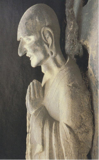 图11 佛弟子,西魏,麦积山石窟第87窟右壁前部