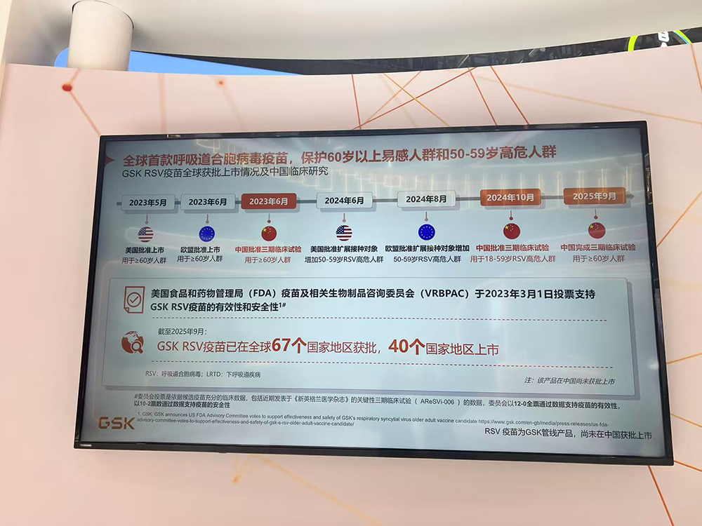 全球首款专门面向60岁及以上老年人的RSV疫苗在第八届进博会上展示。本文图片均为 澎湃新闻记者 陈斯斯 摄