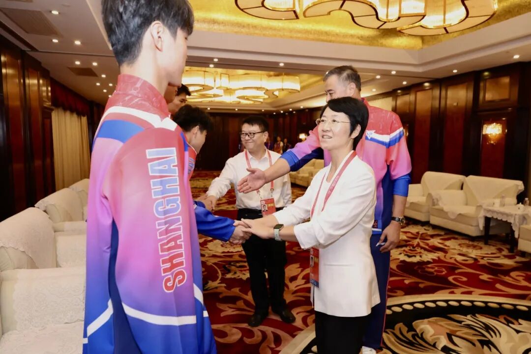 她表示,市委、市政府对本届全运会备战参赛工作高度重视。上海排球队作为全国劲旅,薪火相传,本届全运会更是实现6支队伍全部冲入决赛阶段,希望大家在全运赛场上牢记三个关键词,一是拼搏,拼搏向上、勇攀高峰,勇于承担使命,以拼搏精神投入到比赛中;二是纪律,遵守纪律、恪守赛风赛纪,尊重对手、尊重教练、尊重规则,坚守“拿道德的金牌、风格的金牌、干净的金牌”底线,确保兴奋剂问题“零”出现;三是享受,享受比赛、放松心态,在享受比赛的过程中创造更好的成绩,展现出上海的风貌和风采。