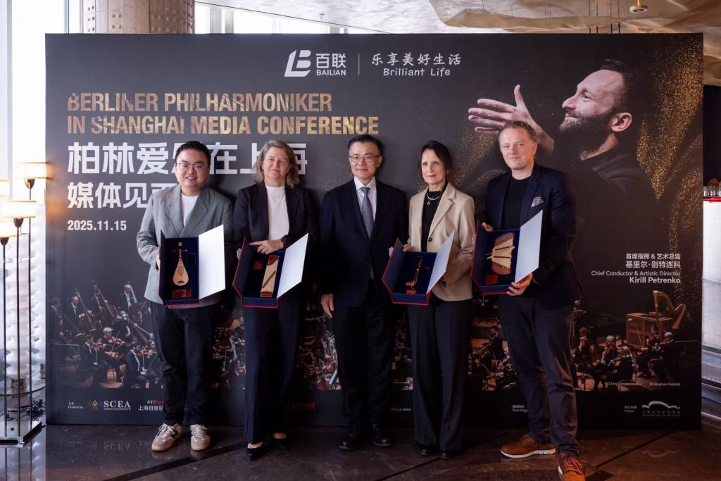 发布会上,柏林爱乐总经理和三位乐手获赠中国乐器礼物:古筝、琵琶、二胡、扬琴